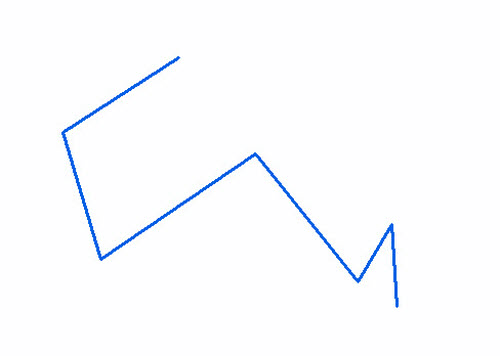 Nachfolgend sehen Sie beispielsweise ein grobes Feature mit wenigen Stützpunkten (Stützpunkte befinden sich lediglich an den Biegungen der Linie), die einen großen Teil des Globus abdecken: