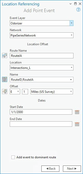 - On the Location Referencing tab, in the Events group, click Add > Point Event