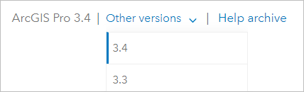 Los tutoriales de inicio rápido se actualizan en cada versión de software para reflejar los cambios realizados en el software ArcGIS Pro. También se pueden actualizar los datos del tutorial. Las versiones anteriores de los tutoriales se mantienen para varias versiones. Disfrutará de la mejor experiencia si sigue los tutoriales utilizando una versión de la ayuda en línea que coincida con la versión de su software. Esto garantiza que los pasos y las imágenes del tutorial coincidan con las capacidades y el aspecto de su software. Cada versión del tutorial se vincula a los datos adecuados.