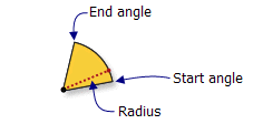 Le voisinage sectoriel est défini par un angle de départ, un angle d’arrivée et un rayon. Le secteur s’étend dans le sens anti-horaire, de l’angle de départ spécifié vers l’angle d’arrivée. Les angles sont mesurés en degrés arithmétiques, 0 degré étant mesuré à partir de l’axe positif des x (15 h 00 sur une horloge).