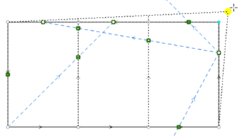 パーセル エッジ トポロジが適用されている場合、2 ポイント ラインまたは曲線上の、パーセル ファブリック ポイントに対応していない頂点は無視されます。 パーセル ファブリック ポイントを移動したときに、これらの頂点によって 2 ポイント ラインまたは曲線が屈曲することはありません。 ラインと曲線は、以下の図に示されている共線性を維持します。