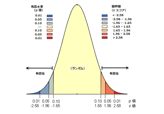 | Z スコア (標準偏差) | p 値 (確率) | 信頼度 |