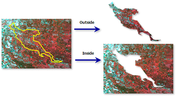 If you choose the Outside clip type, the imagery outside the extents will be removed. If you choose the Inside clip type, the imagery within the extents will be removed.