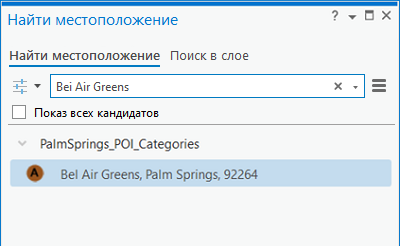 При геокодировании таблиц адресов с использованием этой роли локатора, эта роль также должна содержать названия местоположений и географические зоны или уникальные названия или значения, которые могут использоваться для идентификации этих местоположений. Информация о географической зоне применяется для того, чтобы сузить рамки поиска, поскольку одно и то же название, например, Rochester, имеется во многих штатах страны. При геокодировании POI плюс адрес включите название места в поле address и адрес в поле address2. Вы также можете использовать локатор, созданный с ролью POI, для поиска объектов по имени, категории или комбинации имени или категории и частей адреса. Например, введите Starbucks, Orange St, Redlands или gas station, Boulder, CO. Локаторы, созданные с этой ролью локатора, поддерживают следующие форматы поиска: