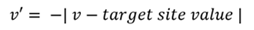 The calculation starts with transforming each value v by the influence, producing a new value v'. The influence can be set to positive, inverse, ideal, or target site. The calculations for influence are as follows: