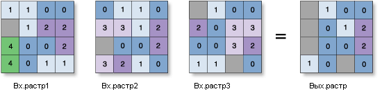 - Прикладной смысл применение инструмента имеет в том случае, если в качестве входных данных используются, по меньшей мере, три растра. Если задан только один набор входных данных, выходной растр будет дубликатом входного растра.