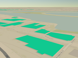 面要素通过垂直拉伸可创建块。 这是将建筑物覆盖区表示为 3D 建筑物的简便方式。 您还可以按属性拉伸面以创建 3D 棱镜图,例如房产价格、县人口或者人口普查区块收入。