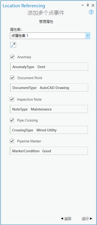 默认情况下,在启用引用的图层中使用路径和测量创建多个点事件时,将使用父 LRS 网络作为 RefMethod 值。 路径 ID 将用作 RefLocation 值,新点事件测量值将用作 RefOffset 值。