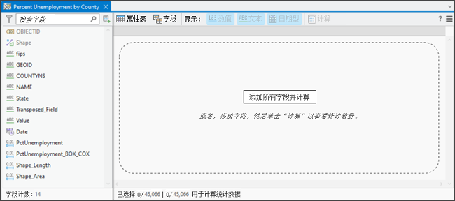 按照上述步骤重新打开数据工程视图。 您从字段面板添加到统计数据面板的字段仍显示在屏幕上。 您在同一 ArcGIS Pro 工程中计算的任何统计数据也将保留。